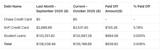 Total debt was reduced by $839.82 in a month that was all about the holidays!